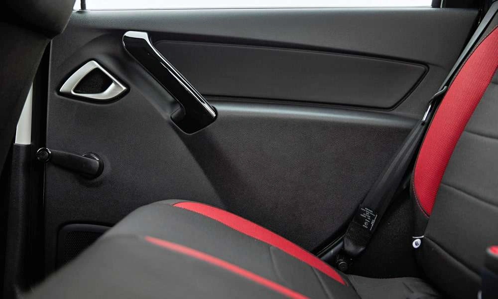 • Обивка сидений ткань. Цвет черный с красными элементами