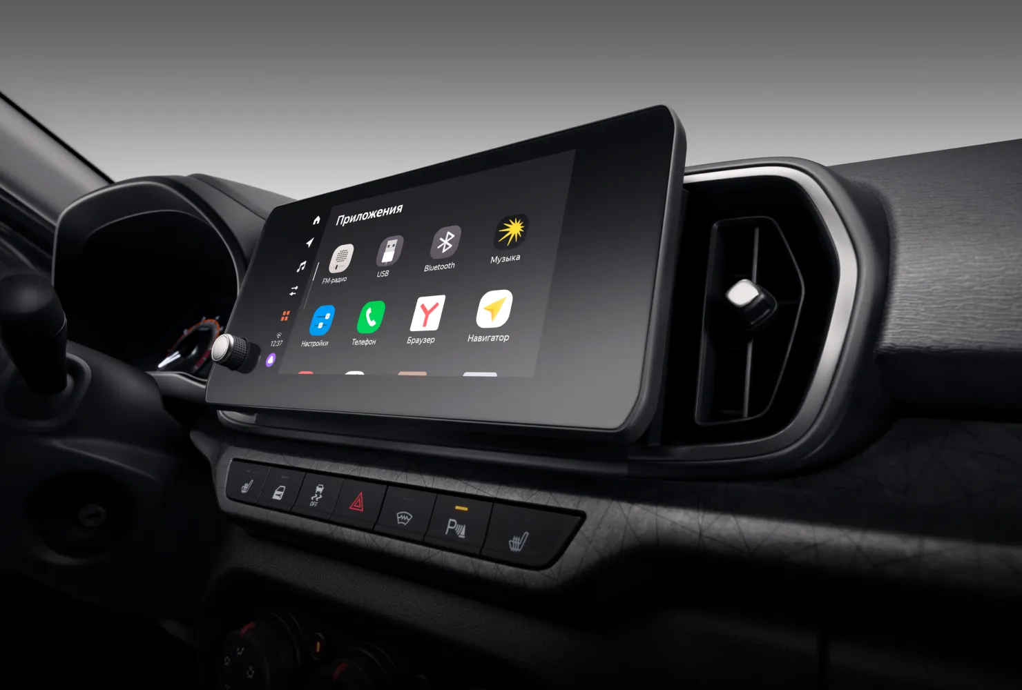 • Мультимедийная система LADA EnjoY Evo (8'' TFT-IPS ёмкостный дисплей, FM, 2USB, Bluetooth, Hands Free со сдвоенным микрофоном и функцией шумоподавления, интегрированная платформа Яндекс Авто с виртуальным ассистентом Алиса с функциями голосового управления ММС и Яндекс Навигатором), 4 динамика